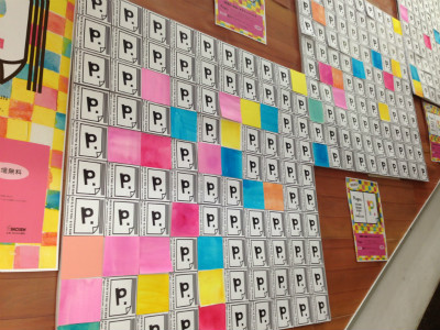 書泉ブックマート1F~2Fの階段壁面にて、お客様参加型のモザイク作品制作企画を開催中です。