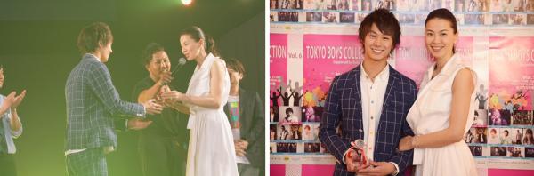 第6回日本最大級の男性ファッション&音楽イベントTBCは昨日、のべ約6000人を動員し盛大に開催されました。そのランウェイで行われた「イケメン総選挙」では、ガンパティー提供無料コミュニケーションアプリ『BUZZ POP』総ダウンロード数と一般からの「WEB投票」、当日投票、及び女優・江角マキコ(48、下の各写真右)ら特別審査員による審査の総合評価により、第6回「イケメングランプリ」は、西村一輝さん(19、下の各写真左)に決まりました。