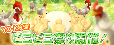 ピヨピヨ祭りでは、期間限定のクエストで入手した卵を温めて、ひよこに孵化させ、鶏のつがいをつくり、卵を産ませる。この一連の養鶏の流れを体験できるイベントです。
