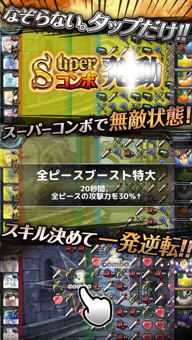 誰でも簡単に楽しめるパズルの操作性と、敵が迫って来るディフェンスゲームの緊張感をミックスした新しいバトルシステムとなっています。プレイヤーは、勇者陣地より迫りくる【バトルピース】を消す事で攻撃を行い、【スキル】【スーパーコンボ】といった技を駆使しながら戦う、戦略性を兼ね備えたバトルを繰り広げることも可能。