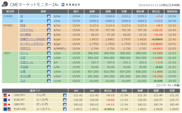 ※CMEマーケットモニター24hは時事通信社の提供する情報で10分ディレイとなります。リアルタイムの為替レートは相場メニューの「為替レート」画面にてご覧ください。