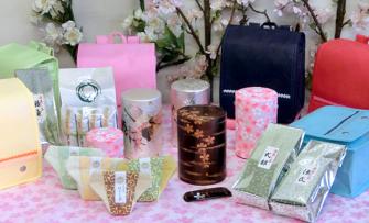 高級彫刻缶に深蒸し茶 式部100g入り・さくら茶さじ