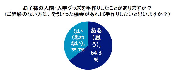 「入園・入学グッズ」を手作りしたことがある(もしくはしてみたい)」と回答した方は全体の6割となり、「入園・入学グッズ」に関わったり、関心があったり、という方が多くいらっしゃることが分かります。