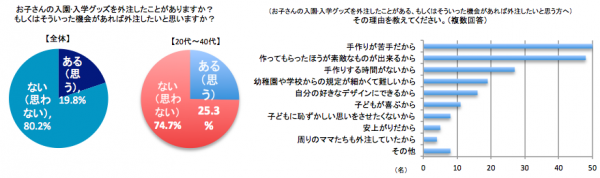 「入園・入学グッズの外注に抵抗がありますか?」という質問に対しては「まったくない」「あまりない」と回答した割合の合計が半数を越え、「抵抗がある」と回答した方を上回る結果となりました。