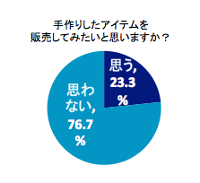 「(入園・入学グッズに限らず)手作りしたアイテムを販売してみたいと思いますか?」という質問に対してはおよそ4人に1人の方が「思う」と回答し、「手作りする」ことの一歩先の「販売する」ということの興味を持つ方もいらっしゃることが分かります。