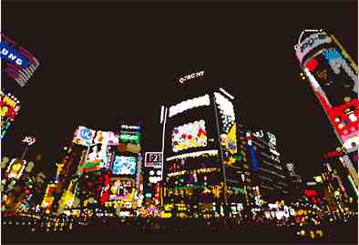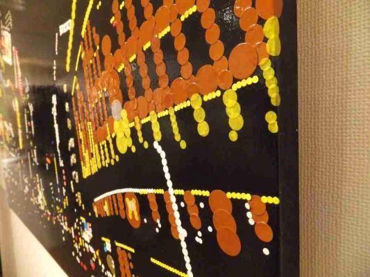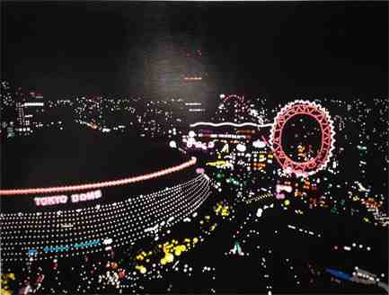 丸シールで絵を描く独自の発想で夜景を中心に作品を発表している。