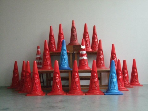 ピーマンの中の空気を水上置換法で瓶詰めにした「エクストラヴァージンピーマンエアー」や道を守るという共通性から地蔵とコーンをかけあわせた「地蔵コーン」など一風変わった作品を発表し続けている長谷川維雄、スタイリッシュな女性のイラスト作品が人気をよんでいるmayomikami、女性向けのオシャレなアクセサリーで注目を集めているおもいで学舎のアーティストの作品を3月20日より販売する予定です。