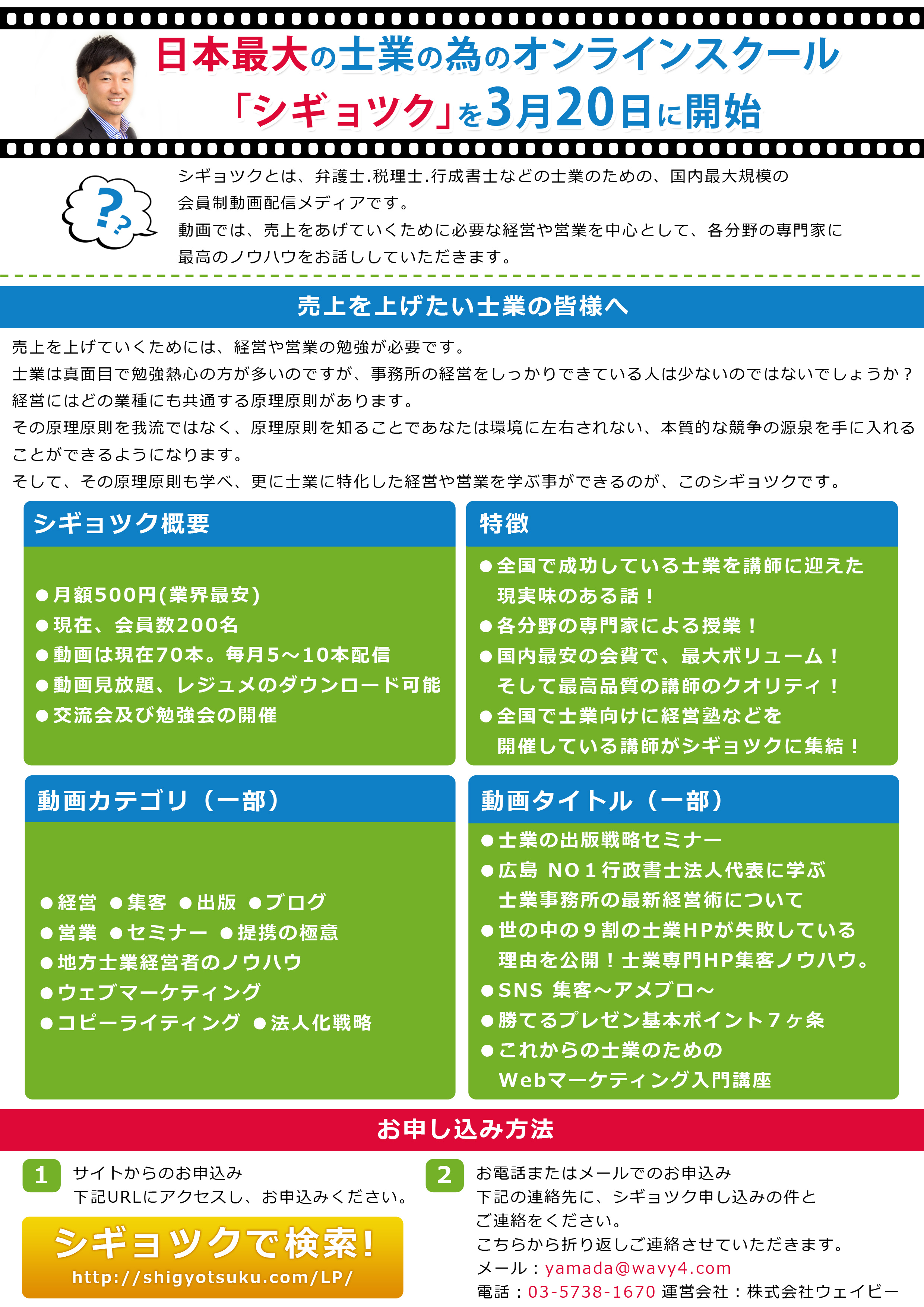 【国内最大規模の士業の為のオンラインスクール「シギョツク」を3月20日に開始】