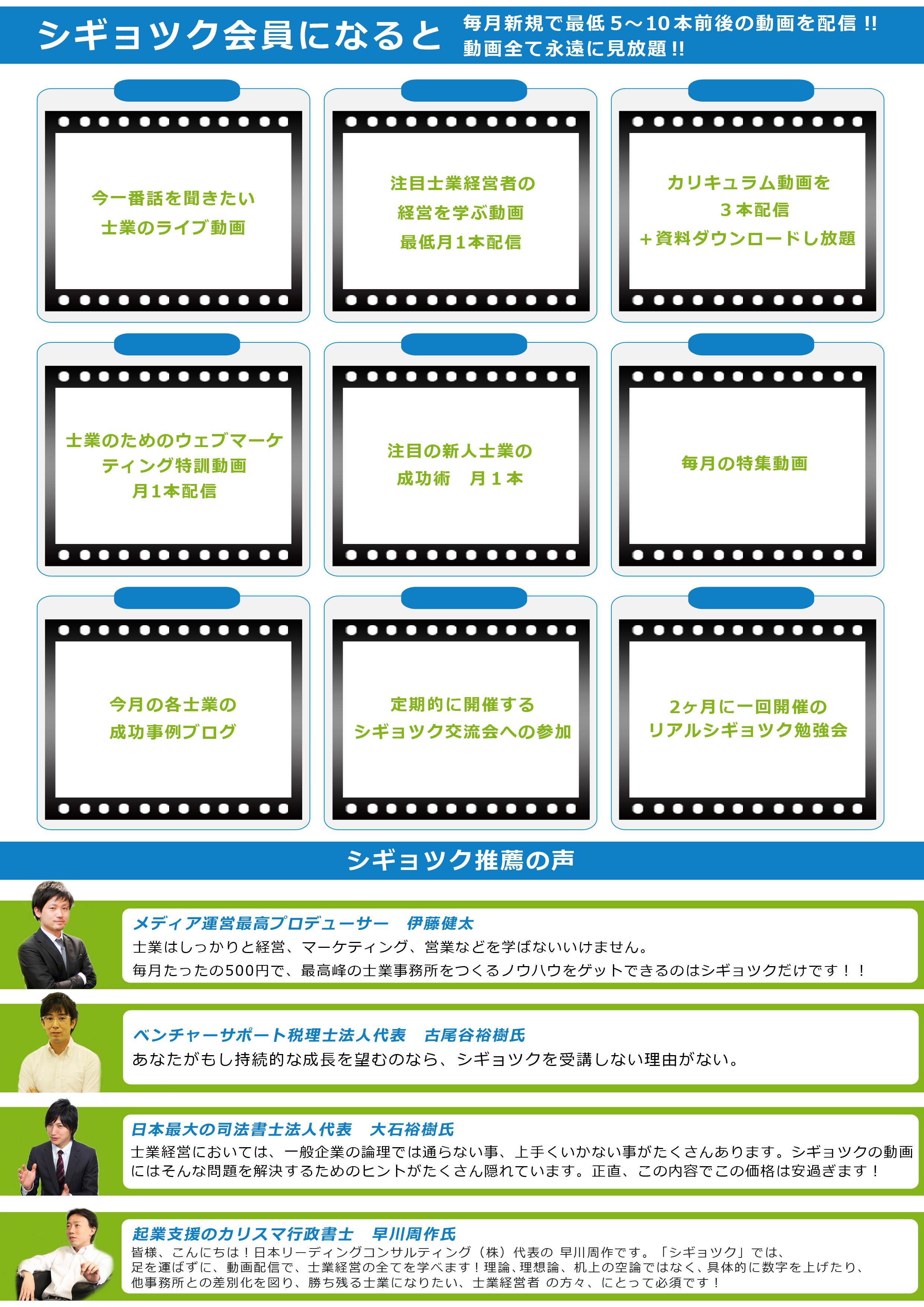 シギョツクは、弁護士.税理士.行成書士などの士業の為の、