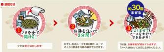 湯切りが必要なカップ焼そば等の汁なし即席めん商品を、お湯を入れて混ぜるだけで作ることができる即席カップめん業界初※の商品シリーズです。※湯戻しタイプの即席めん