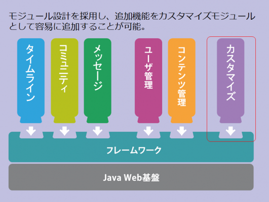 300社以上の導入実績があり、社内SNSパッケージ製品として完成度が高くカスタマイズ箇所を最小限に抑えることができ、低価格で独自の社内SNSの導入が可能になります。