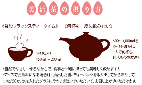 「美活茶」は、からだの糖化を抑える抗糖化サポートの高い成分で、年齢と共に崩れるホルモンバランスを補う成分を凝縮ブレンドしました。