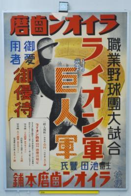 昭和12年夏、プロ野球創生期に設立一年足らずの大東京軍を引き継ぐ形で誕生したライオン軍は、連敗続きでめっぽう弱いながらも、ファンからとても愛された球団でした。太平洋戦争直前に行われた、政府からの英語禁止通達によりたった3年半で消滅してしまいますが、後楽園球場の広告入りスコアボードの寄贈や商品購入者への無料招待など、そのユニークな球団経営は現在のプロ野球の礎となっております。