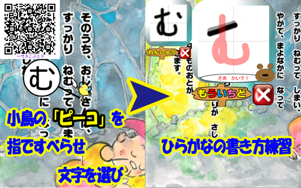 読み聞かせ用の絵本アプリは、山ほどありますが、「ひらがな」の書き方練習機能がついたアプリなんて見たことありますか?