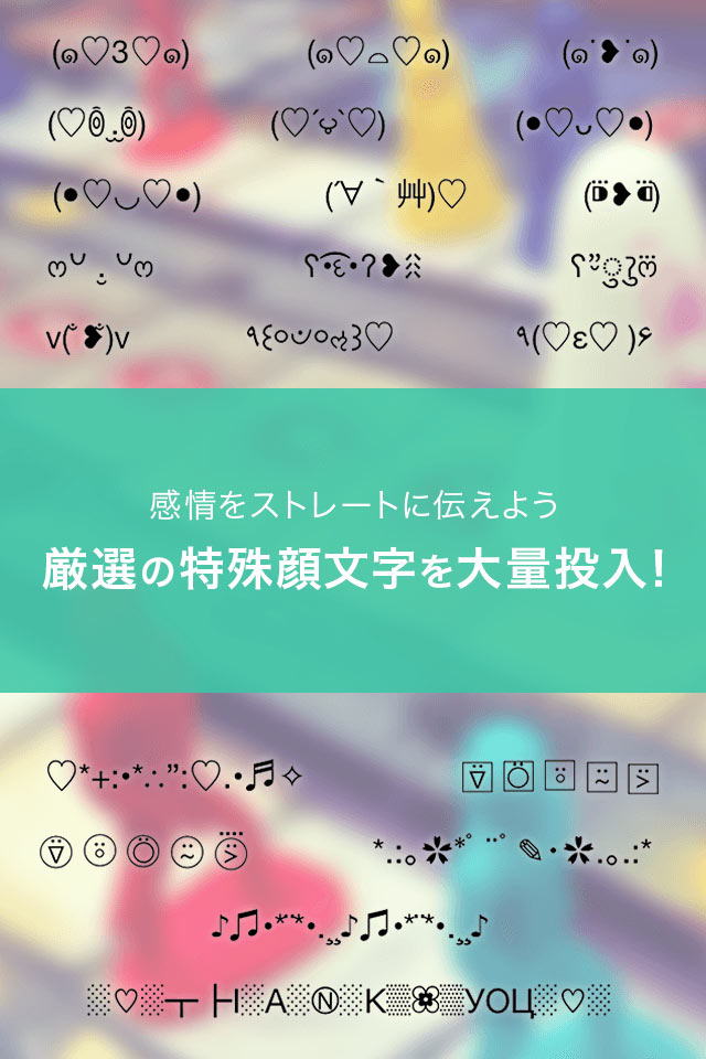 ・日本語キーボードには選び抜いた超かわいい特殊顔文字を厳選して搭載しています。