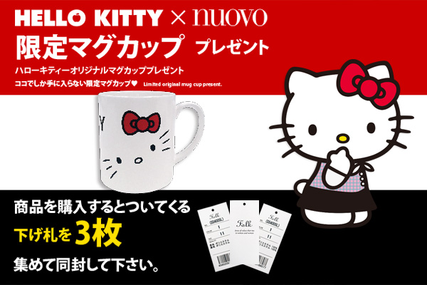 事務服とメディカルウエアのユニフォームメーカー、フォーク株式会社(本社:埼玉県加須市、代表取締役社長:小谷野淳)は、自社の事務服ブランド「nuovo(ヌーヴォ)」の2015年度企画として、2013年よりコラボレーションをしているサンリオの人気キャラクター、ハローキティのオリジナルイラストが入ったマグカップを事務服購入者にプレゼントする。