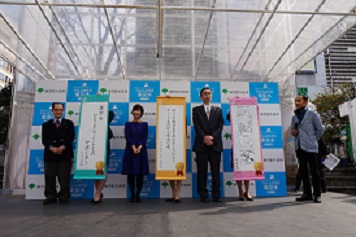 当日は、とても暖かく絶好の日和でした。 新宿駅東口には多くの方たちが通行しており、 発表会の開催時間前から大変多くの方たちが足をとめ、 片岡鶴太郎さんの登壇や受賞作品の発表・ トークセッション などのステージに見入っていました。 沢山の拍手をいただき、大盛況のうちに終了しました。
