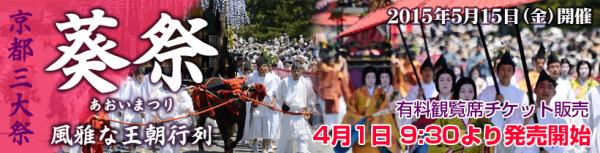 株式会社ティー・ゲート(近畿日本ツーリストグループ、本社 東京都千代田区、社長 甲斐聖一)が運営するトラベルサイト「旅の発見」(http://tabihatsu.jp)では、2015年4月1日(水)9:30より京都三大祭のひとつ「葵祭」(2015年5月15日開催)の有料観覧席(全席指定・パンフレット付)チケットを販売します。