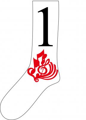 - 数字を数えるリズムと靴下をはいて歩くリズムを視覚化したデザインの靴下(竹村晃一さん) - (上・画像)