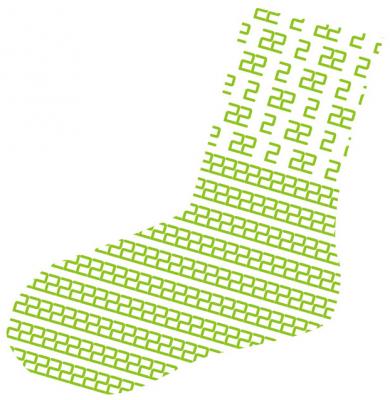 - 数字を数えるリズムと靴下をはいて歩くリズムを視覚化したデザインの靴下(竹村晃一さん) - (上・画像)