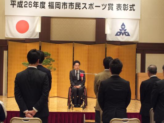この賞は、毎年、市民スポーツの発展に著しい功績を収めた個人または団体に対し、広く栄誉を称えることを目的に贈呈されるもので、平成27年3月26日に表彰式が行われました。