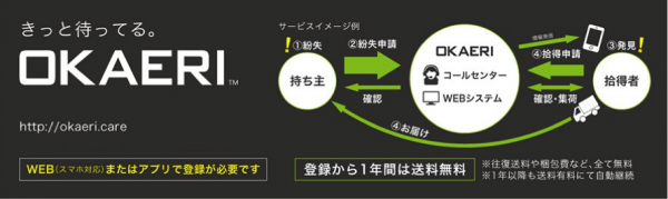 落とし物配達サービス「OKAERI(おかえり)」の年間利用権が付いてきます。