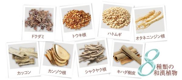 1) 8種類の和漢エキスにより「自らの力」で美しく。