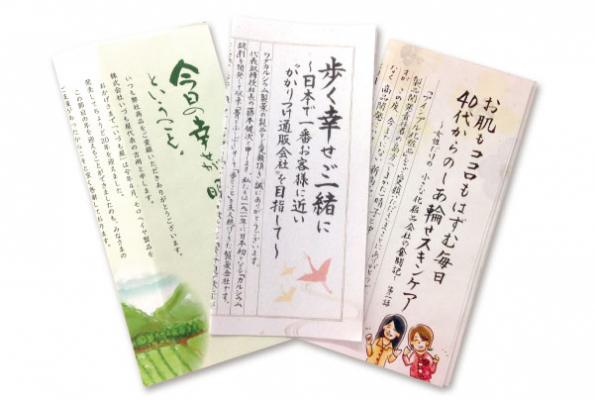SNSやメールでのコミュニケーションが全盛の現在、この「手書きのラブレター」を、企業とエンドユーザーを結ぶ販促ツールとして専門的に企画・制作を手がけている会社があります。約20年にわたり、おもに通販企業への企画提案・コンサルティングを行ってきた「(株)ケイ・ネット」(大阪市)です。