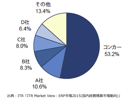 出張・経費管理クラウドのリーダー Concur Technologies, Inc.の日本法人である株式会社コンカー(本社:東京都千代田区、代表取締役社長:三村真宗、以下 コンカー)は株式会社アイ・ティ・アール(以下ITR)が発行する市場調査レポート「ITR Market View:ERP市場 2015 国内経費精算市場動向」において、コンカーが開発・提供する「Concur Travel & Expense」が、国内経費精算市場におけるベンダー別売上金額シェアでトップを獲得しました。2014年度(予測値)のコンカーのシェアは53.2%になっており、売上の前年比は133.1%成長を見込んでいます。