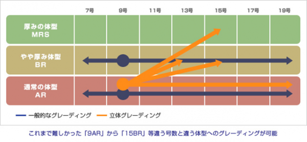 同社では、これらの考え方を取り入れたAGMS社の「立体グレーディングシステム」を採用し、これまでのサービスで培った経験とノウハウで、このシステムをより効果的に活用し、独自の高品質なグレーディングを行っています。
