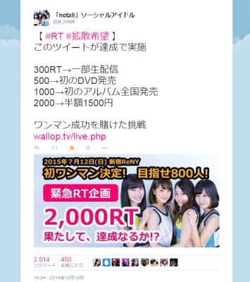 ▼notall初のワンマンライブを盛り上げる2000RT企画(2000RT達成済)