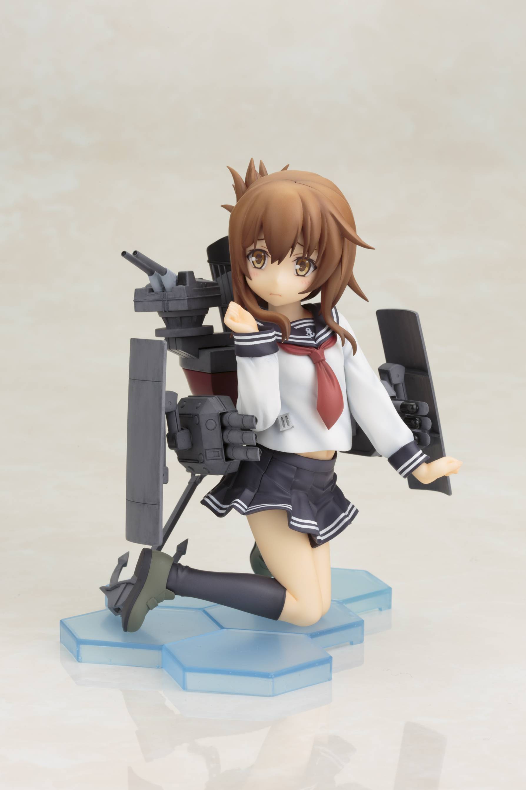 TVアニメが好評を博し、第二期の制作も決定した『艦隊これくしょん -艦これ-』より、暁型駆逐艦の優しくて穏やかな性格の艦娘「電(いなづま)」をアニメ設定バージョンで立体化しました。可愛らしいキャラクターデザインや艤装の各部など、細かい部分もアニメの設定を再現。艤装はシールドや三連装魚雷・連装砲が可動します。同型姉妹艦の「雷(いかずち)」を第一弾として、8月から2ヶ月連続で発売予定です。姉妹艦として性格が対照的な二人は、表情やポージングも対になる仕様。ぜひ二人揃って貴方の執務室にお迎えください。