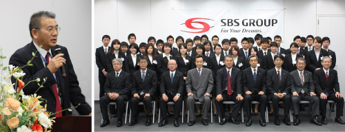 SBSグループは、4月1日、墨田区太平のグループ本社に新入社員38 名を迎え、鎌田正彦SBSグループ代表はじめ新入社員が所属する各社の役員が出席して「2015 年度SBSグループ合同入社式」を行いました。