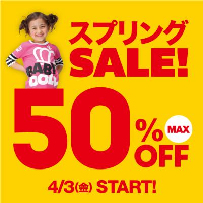株式会社コージィコーポレーションが運営するベビー・キッズ服ブランドBABYDOLL(ベビードール)がBABYDOLL・STARVATIONS(スターベイションズ)各店、通販各店にて、4月3日(金)より<MAX50%OFFスプリングセール>を開催します。