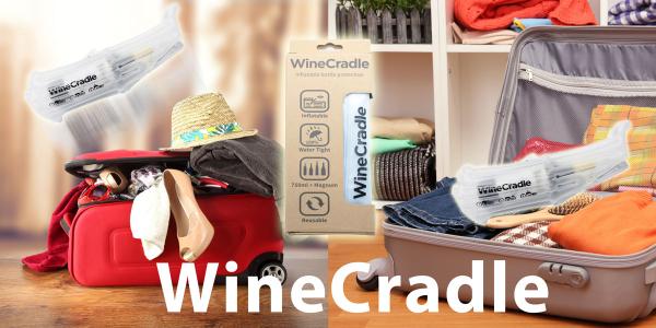WineCradle (ワインクレードル)は、預け荷物のスーツケース内のワインボトルを空気でガッチリ守ってくれるエアープロテクションバッグです。