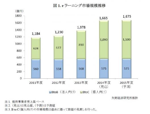 本調査におけるeラーニング市場とはインターネット等のネットワークを利用した学習形態を対象とし、ゲーム機やパソコン向けソフトウェアを利用したものを除く。また学習コンテンツとしては、ビジネス、教科学習、語学、IT技術、資格取得、教養・雑学など幅広いジャンルを含む。