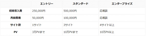 ※エンタープライズ版は、PV数・サイト数より月額課金が変わりますので別途お問い合わせください。