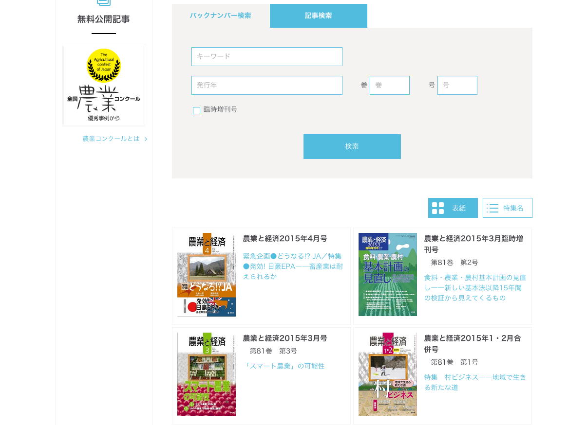 『農業と経済』は農業問題を機敏に解説するオピニオン誌として1934年に創刊、昨年80周年を迎えました。それを記念して、長きに渡り蓄積されたコンテンツをよりオープンな形でご活用いただけるように、この度デジタル化とサイト上での配信を実現いたしました。