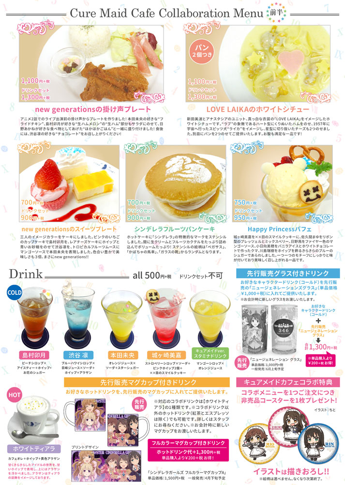「ジーストア・アキバ」6Fのキュアメイドカフェにて、人気アニメタイトル『アイドルマスター シンデレラガールズ』とのコラボカフェ『アイドルマスター シンデレラガールズ×キュアメイドカフェ』を4月29日(水・祝)まで開催する。