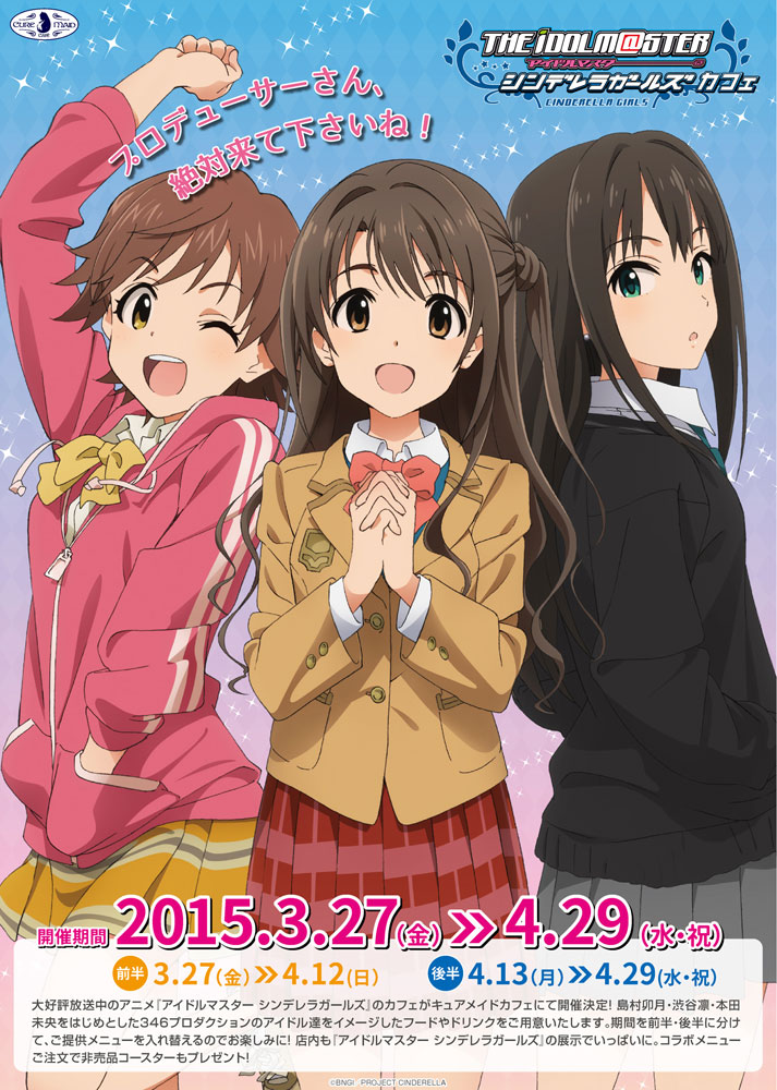 島村卯月・渋谷凛・本田未央をはじめとした346プロダクションのアイドル達をイメージしたフードやドリンクの提供や、店内には『アイドルマスター シンデレラガールズ』関連の展示が行われている。