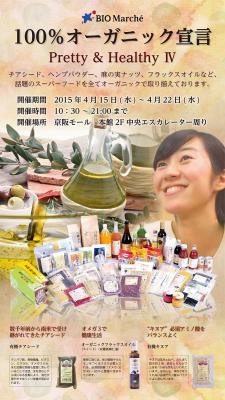 京阪モールへの出店は4回目となります。今回のマルシェでも、全商品オーガニックの品揃えで話題のフラックスオイル(アマニ油)やチアシード、ココナッツミルク、麻の実ナッツ、ヘンプパウダーなど美容と健康(エイジングケア)に嬉しいスーパーフードおよび手作りオーガニックソープ、愛犬や愛猫にもやさしいペットフードなどのバラエティにとんだ商品を展示即売いたします。また、「ビオ・マルシェ」の魅力ある特典をつけた宅配会員の新規募集も同時に行います。