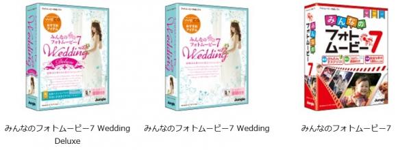 『みんなのフォトムービー7』シリーズはユーザーのニーズに合わせ、1,000点を超える素材を含みながらもベーシックな『みんなのフォトムービー7』、ウェディングシーンで再生させる際に適した素材を多く含む 1,700点の素材を付属する『みんなのフォトムービー7 Wedding』、さらに Adobe Photoshop で出力した .psd ファイルをレイヤー分けされた状態で読み込め、高度な写真のデコレーションなども可能にする『open Canvas LITE』を収録した『みんなのフォトムービー7 Wedding Deluxe』の 3グレードを用意。