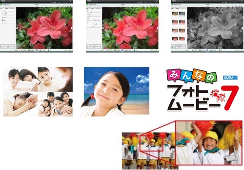 加え、『みんなのフォトムービー7』シリーズでは新たに Ultra HD (4K) 動画の入出力にも対応し、高画質デジタルカメラで撮影した写真からスライドショーを制作する際にも Ultra HD のプロファイルで出力可能なことから、「最も美しいフォトスライドショーを制作できるツール」となりました。