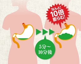 特定保健食品に指定された、健康で安全な天然食物繊維でお腹の中で10倍以上に膨らみます。