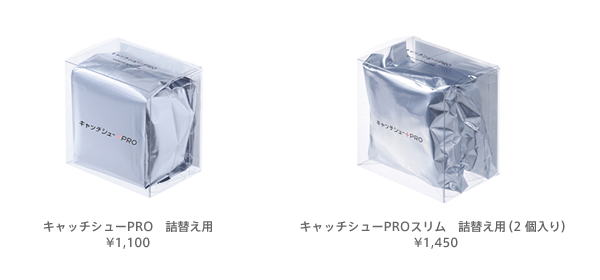2015年2月の発売以降、大変ご好評いただいている「キャッチシューPRO」。ご愛用者様からのご要望にお応えして、同年4月に待望の詰替えタイプが新登場いたしました。お取り替え時期をメールでお知らせする便利な機能も追加。置き場所を選ばないスリムタイプ「キャッチシューPROスリム」の詰替えはお得な2個入り。エコで便利な詰替えタイプもぜひご活用ください。