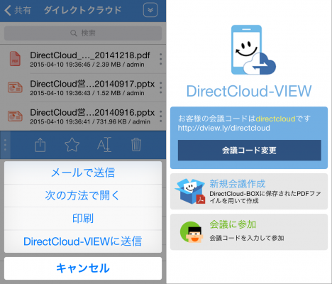 「DirectCloud-VIEW」とは、法人向けオンラインストレージ「DirectCloud-BOX」に蓄積されているファイルをリッチコンテンツ化し、デバイス間でデータ同期技術を利用することで手軽にペーパーレス会議が実現できるプレゼンテーションアプリです。