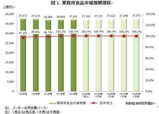 老人福祉施設を中心とした給食需要に支えられ、業務用食品市場規模は微増推移を予測