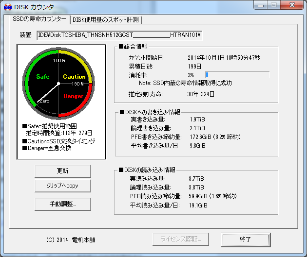 SSD寿命カウンタ Ver1.4.3