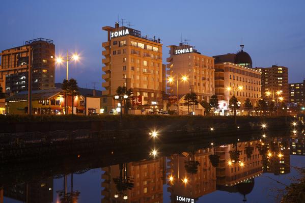 『小樽運河前ホテルソニア』は、JR小樽駅から徒歩約8分の立地。本館(37室)と新館(58室)の2棟から成り、どちらもその名のとおり小樽運河が目の前というロケーションに恵まれています。落ち着いた雰囲気のヨーロピアン&英国アンティークで館内がコーディネイトされたお洒落なホテルです。