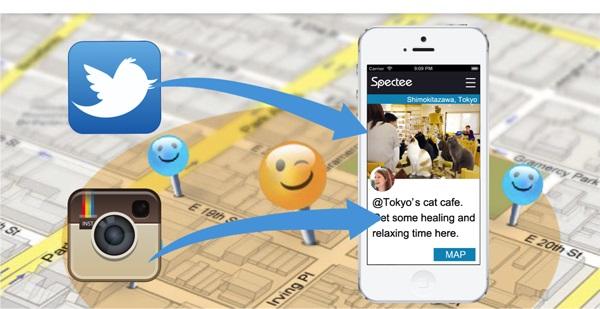 (*1)『Spectee』は、特定の地域で発信されたツイッター等のソーシャルメディアの情報を、独自の情報収集解析エンジンを利用して、リアルタイムにその場所で起きている出来事やその場所に関連した情報を自動的に編集し、配信するほか、実際にその場所にいる人同士でコミュニケーションを楽しむことができる、ロケーションベースのSNSです。